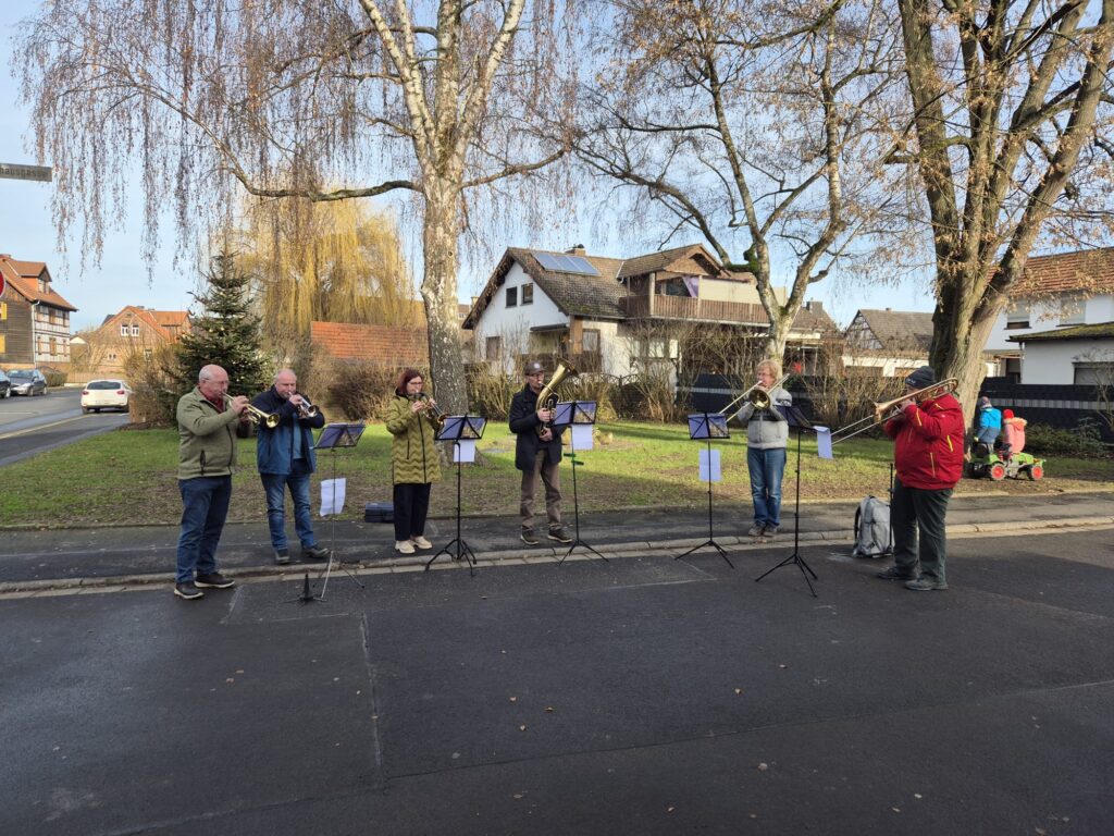 Das Kurrende Blasen hat eine lange evangelische Tradition. Ursprünglich zogen sogenannte „Kurrenden“ – meist Schüler oder junge Sänger – durch die Orte, um singend die Weihnachtsbotschaft zu verkünden. In vielen Gemeinden entwickelte sich daraus auch das Musizieren mit Blechblasinstrumenten. Bis heute gehört diese Form des musikalischen Grußes in der Adventszeit fest zum kirchlichen Brauchtum und bringt die frohe Botschaft von Weihnachten hinaus zu den Menschen – auch in kleiner Runde, aber mit großer Wirkung.
