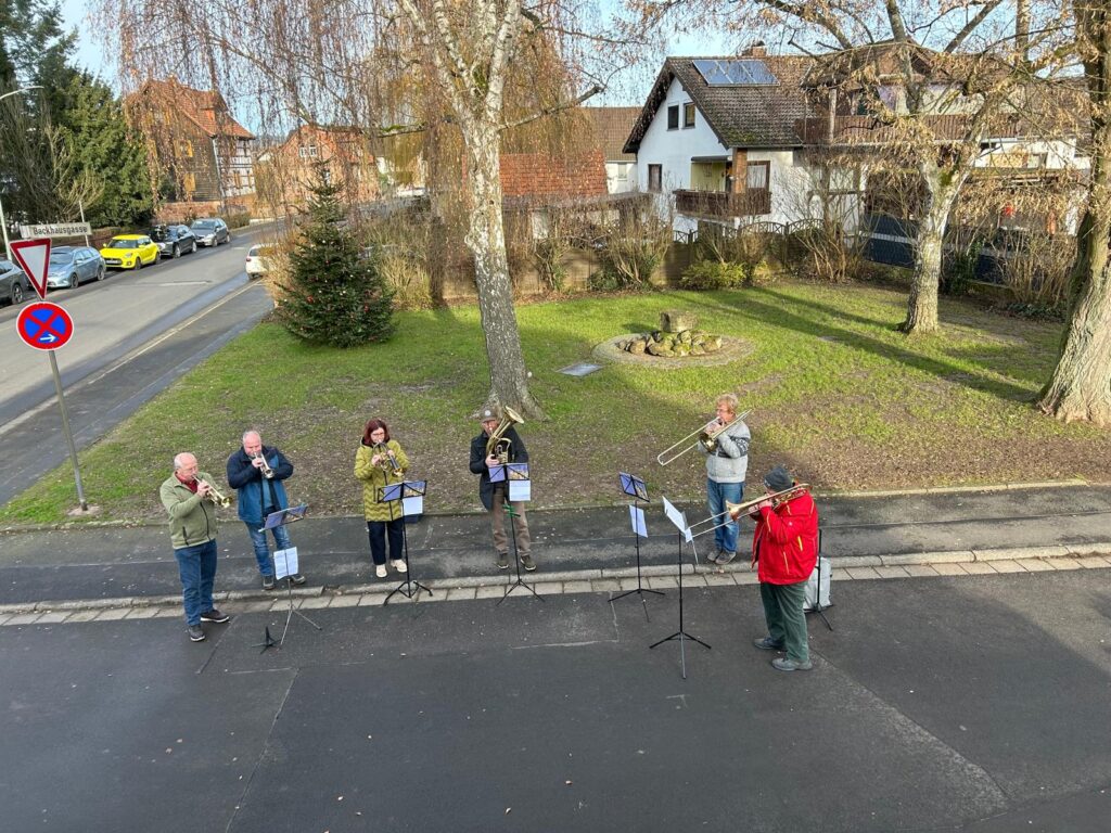 Am 4. Advent lud der Posaunenchor der evangelischen Kirchengemeinde Herrnhaag zum traditionellen Kurrende Blasen auf den Brunnenplatz in Lorbach ein. Es versammelten sich Besucherinnen und Besucher, um den Klängen bekannter Advents- und Choralmelodien zu lauschen. Die stimmungsvolle Musik schuf einen ruhigen Moment der Besinnung und ließ den Platz für kurze Zeit zu einem Ort der Gemeinschaft und Einkehr werden.